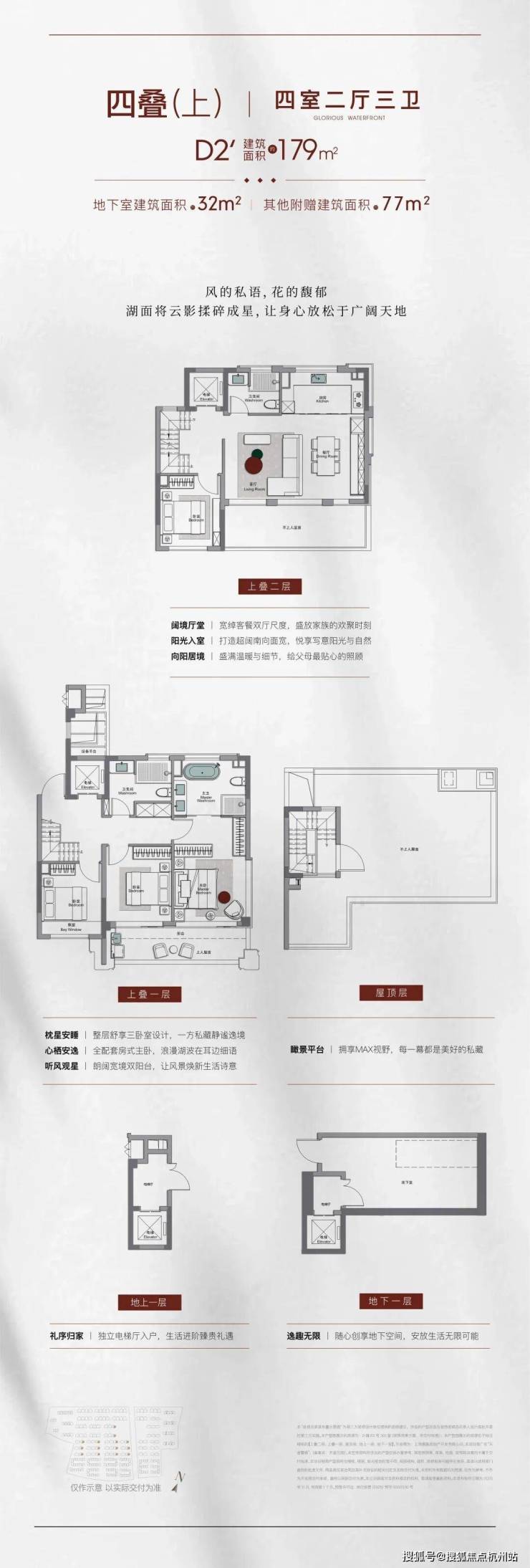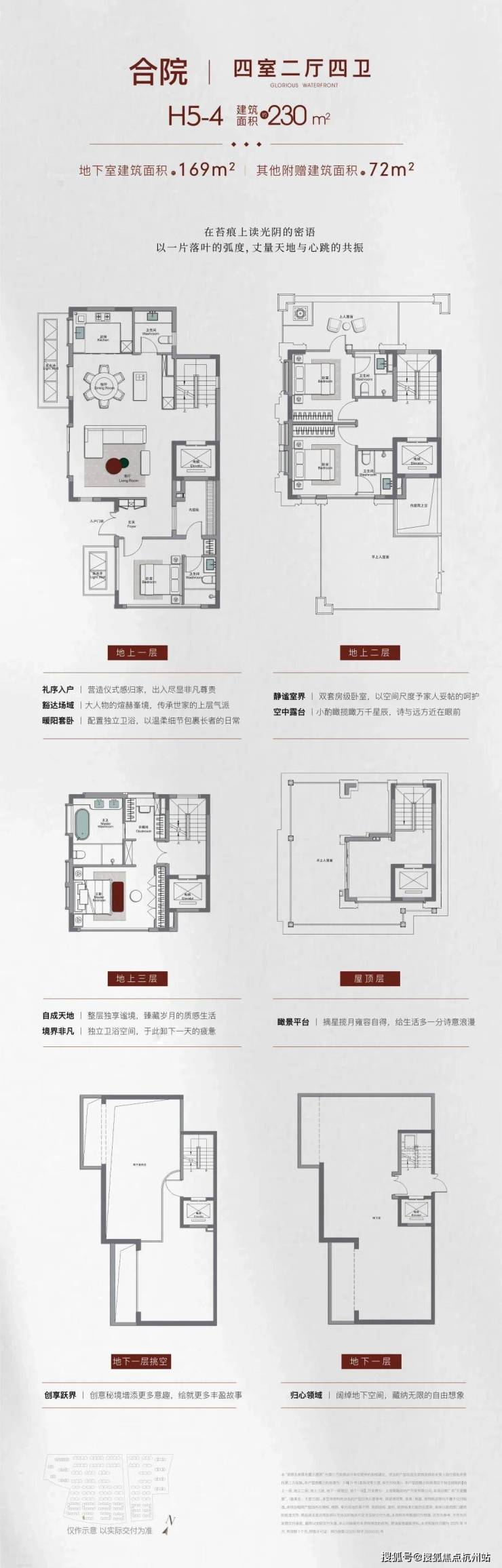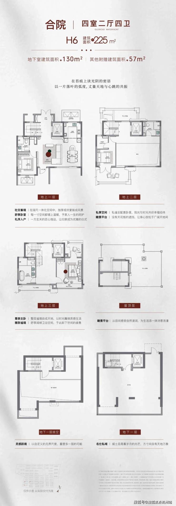 作为项目的顶级产品,约210㎡合院通过巧妙的空间设计实现了近600㎡的实际使用面积。产品配备约5.75米挑空地下室、双采光井设计,打破传统地下空间的幽闭感。星空穹顶以白玉兰为灵感,通过玻璃拼合捕捉瞬息天光。私属电梯直达各层,屋顶平台可俯瞰兰香湖景,真正诠释“有天有地有院”的高端居住梦想。