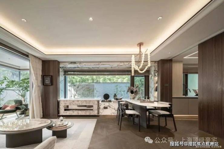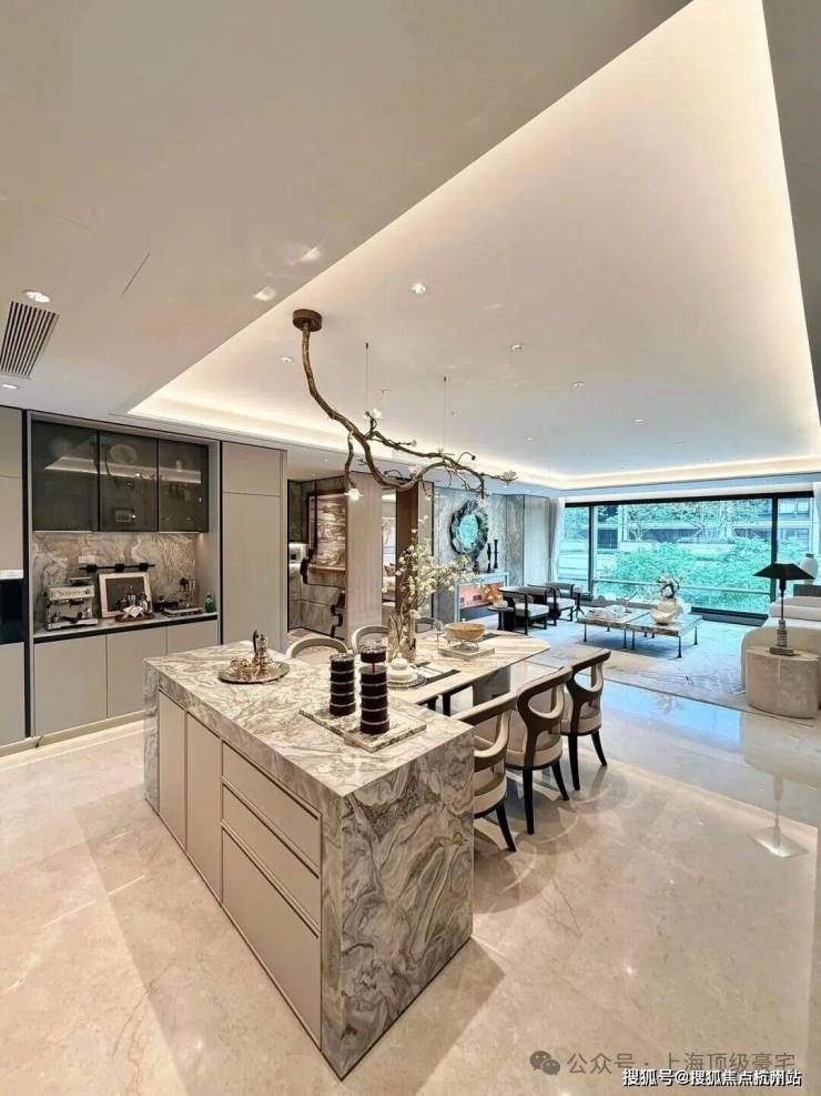 材料 选用 意大利石材,BVLGARI HOTEL大理石,铝型材塑型红, 四层金属网格 墙面以及 梧桐叶金属屏风 等, 打造独属老静安的记忆符号,高奢定制,市区豪宅调性拿捏!