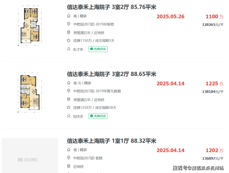 板块二手房方面,建发项目隔壁的上海院子,洋房最新成交价在12-14万之间。