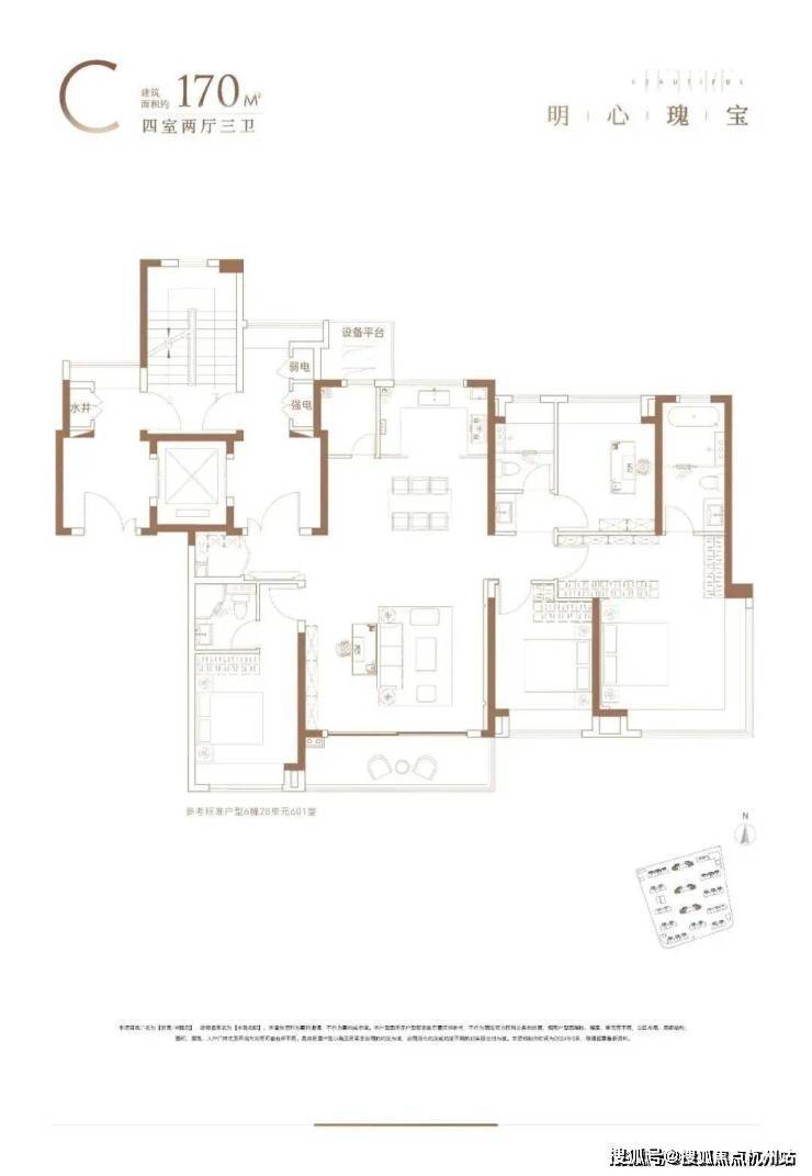 除了建面约170㎡四房,项目还有少量建面约107、128㎡房源在售。