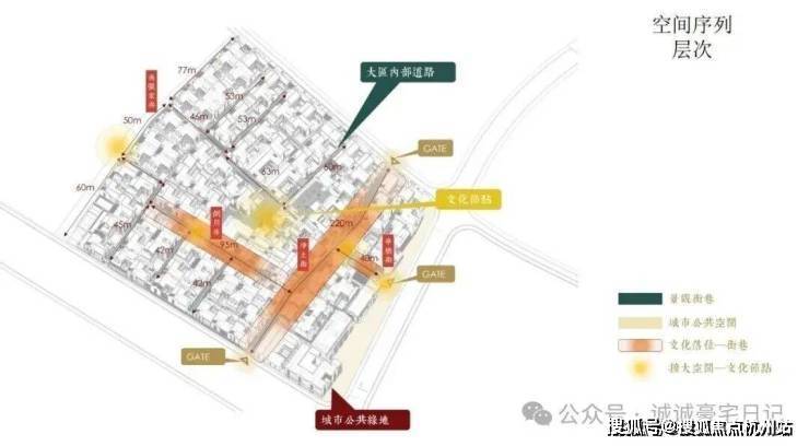 士林润园社区规划可分为蓬莱路城市公共景观以及社区内部景观两个部分,其中市政绿地衔接于上海2035城市总体规划中“蓝绿丝带”的上位条件要求,社区内部街巷空间形成空间序列形成递进的层次,将归家体验的序列依次展开,形成城市街道→入口(一级门户)→街巷→节点空间→里弄门(二级门户)→合院入户(三级门户)的方式,基本可保证大多数住户可体验到两重以上的空间递进。