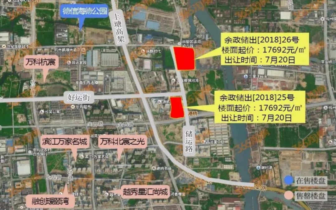 离海德公园最近的地块,应该是今年7月运河新城出让的两宗宅地,均位于储运路上。