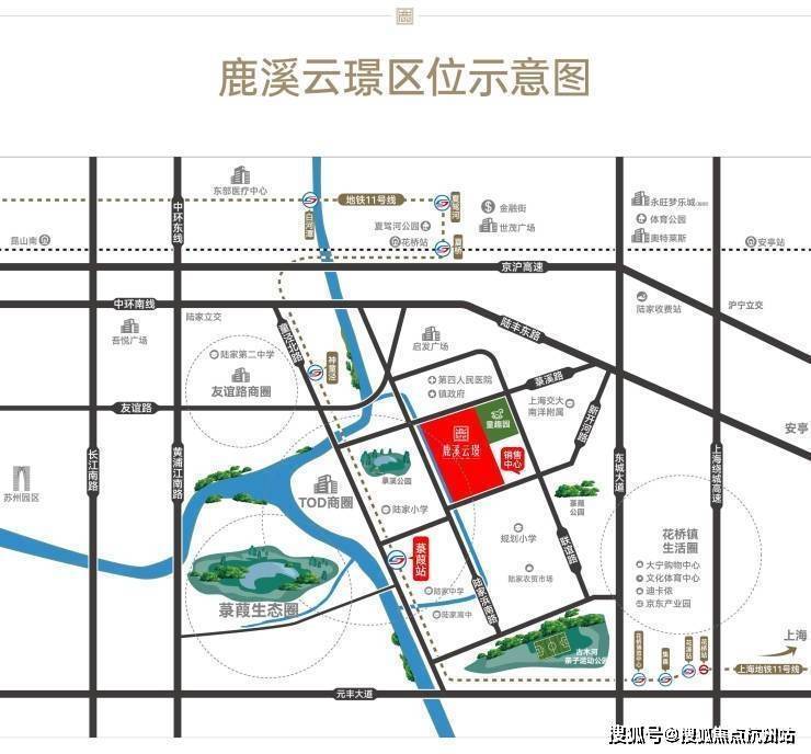 * 项目距离**苏州地铁11号线菉葭站约744米(步行约1.2公里)**。这是其最硬核的交通优势。11号线已开通运营,可无缝连接苏州城区,并在花桥站换乘上海地铁11号线,实现了 **“沪苏昆同城生活圈”** 。对于依赖轨交通勤,尤其是往来上海、苏州的购房者,这是关键加分项。