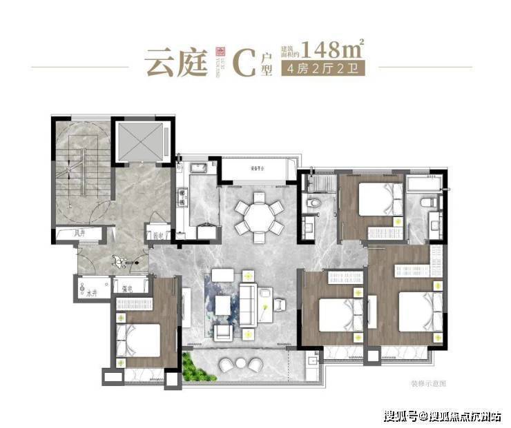 面积户型:约148㎡4房2厅2卫