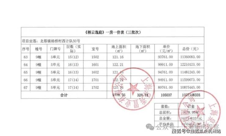 上期一房一价表如下: