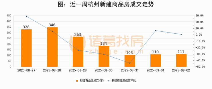 【杭州成交日报】09月02日新房成交111套、二手房144套;涨价房源30套