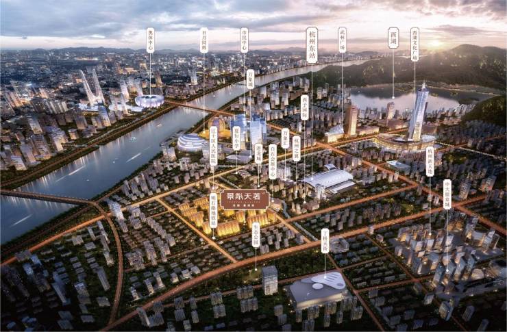地铁1号线、4号线、6号线(在建)、8号线(规划)在地下纵横交织,一座TOD交通网络体系恢弘呈现;东站西子GJ、杭州港龙城(在建)、三花GJ大厦、华润中央车站广场(在建)等环绕,江干区人民医院(在建)落成在即……