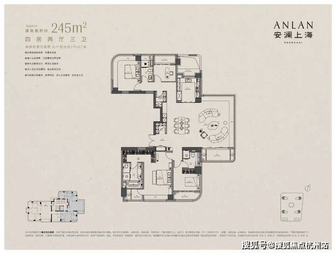首先,不夸张的讲,✅✅安澜上海售楼处电话:400-9966-224✅✅建面约280㎡是我至今看过顶豪界最完美的四面宽全景舱户型。