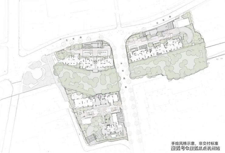 项目通过「柔化边界·城市渗透」的设计手法,以城市微更新的理念,对土地的原生肌理进行有机缝合与编织,借三个地块间的绿轴做自然拼接,构建一轴三园的空间结构,重建家与附近的情感链接。