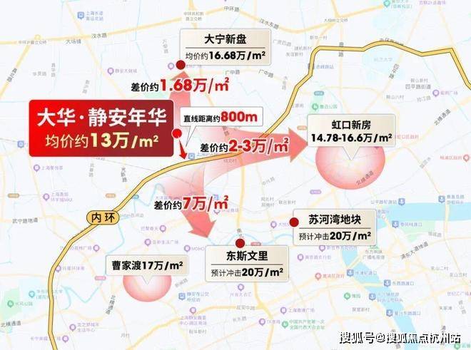 上游东斯文里预计比项目贵7万/㎡,同级虹口新房比项目贵2-3万/㎡,下游新房也比项目高1.68万/㎡,大华·静安年华安全垫拉满!