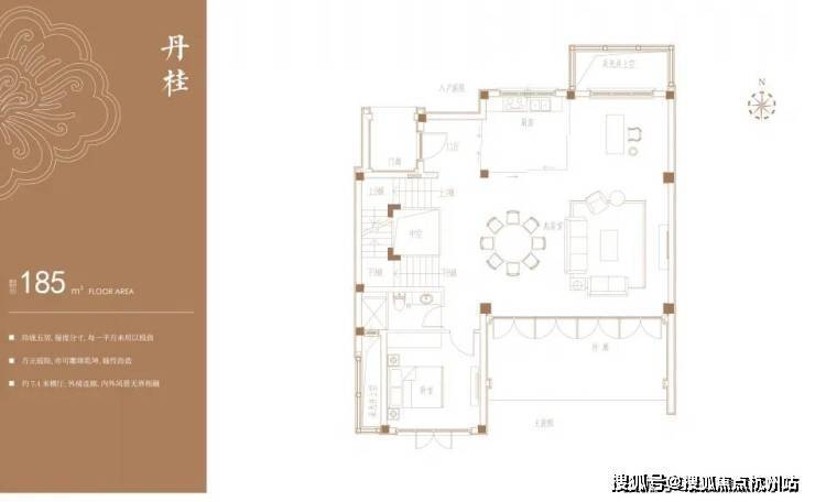 房屋实际可用面积要比户型图标注面积大一些, 以“丹桂”户型为例,户型图标注的建筑面积为185m²,但是 层高最高处可达到9.9米 ,未来完全可以搭建二层,搭建后,地上使用面积可以达到约280m²左右;