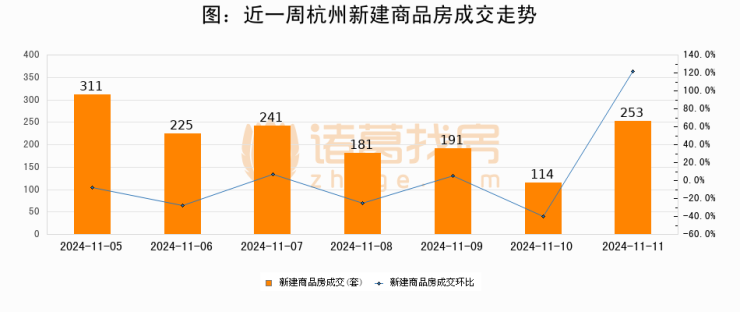 【杭州成交日报】11月11日新房成交253套、二手房479套;涨价房源59套