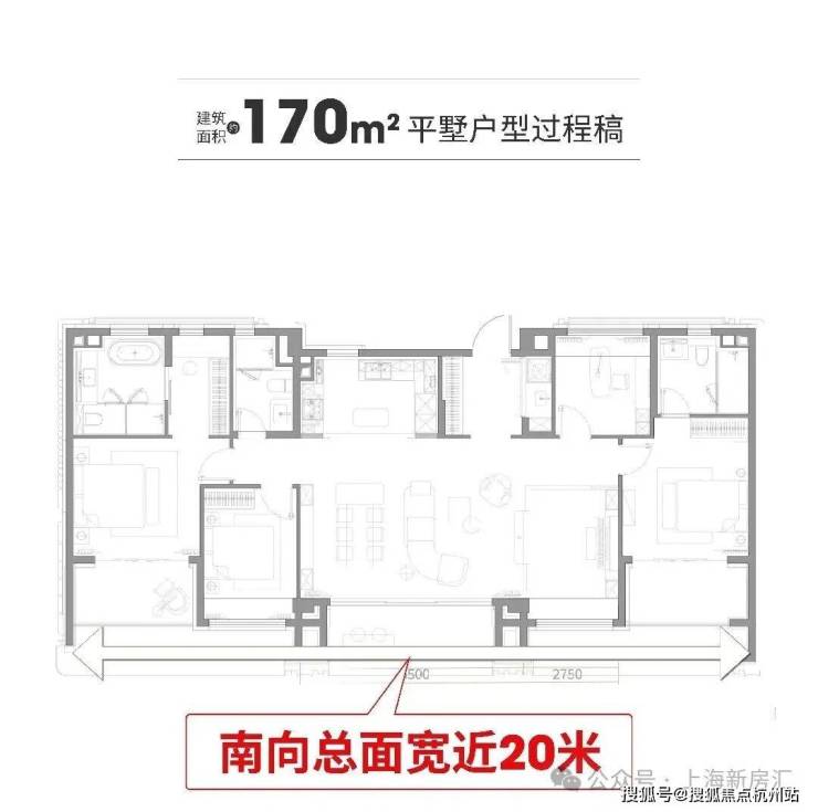 南向总面宽近20米,客厅和活动室加起来宽约9.25米,还做了双套房——主卧有独立卫生间和衣帽间,老人房也有独立卫生间,三代同堂住在一起也不挤,互不打扰。