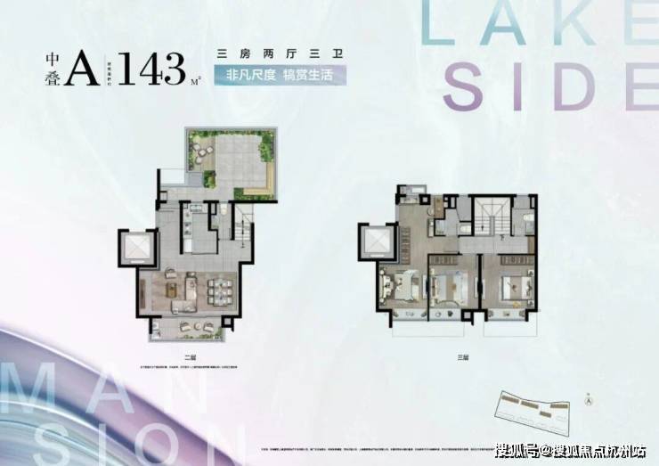 约143㎡3房2厅3卫中叠A户型▼