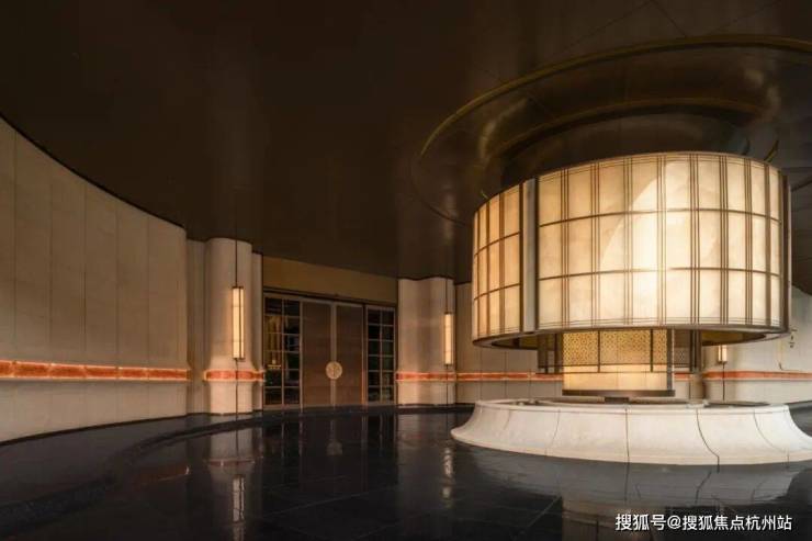 另外,项目首层通过硬朗直线呼应柔和曲线勾勒,辅以温润石材与古铜色金属线条融合,打造东西方美学共融的艺术藏品