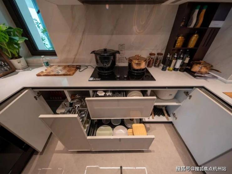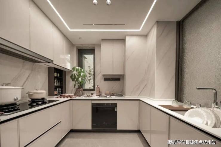 油烟机选用方太(或同等品牌)创新机型,隐藏式升降油烟机,挥手即可控制,市场零售价达13500+,并附赠洗碗机;