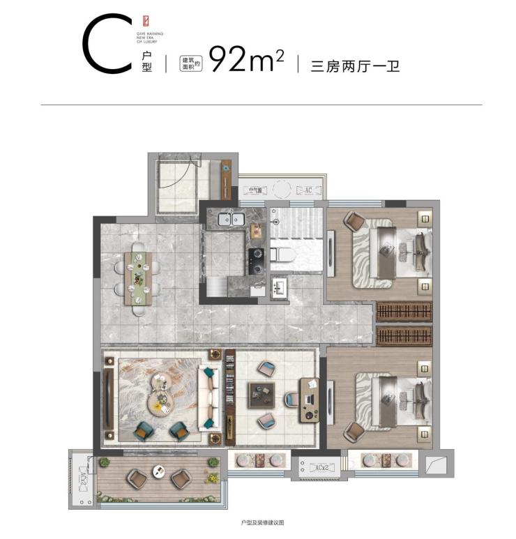 (荣盛.上荣府高得房率92㎡、128㎡户型)
