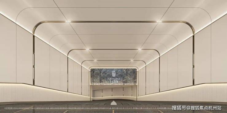 招商臻境,车行入口同样花了极大的心思进行雕琢。相比较市场普通的墙面漆,整个入库车道采用了难得一见的全铝板吊顶与通铺,配合追光式的灯带设计,车辆缓缓驶入,铝板的高级质感与柔和追光的仪式感一点点打开。