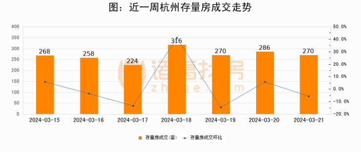 【杭州成交日报】03月21日新房成交267套、二手房270套;涨价房源154套