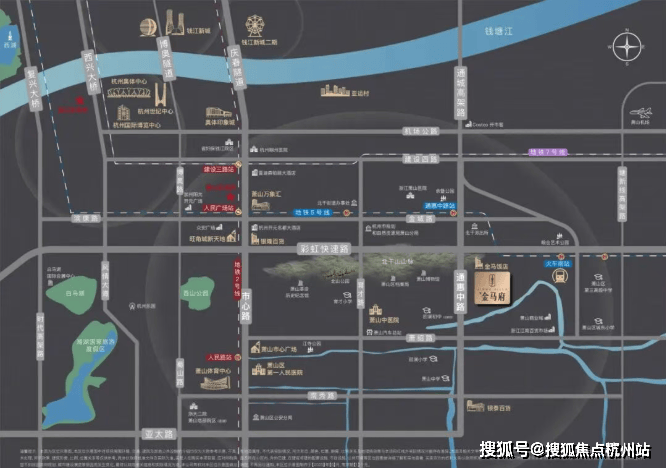 ◈ 山水自然 :北靠北干山,毗邻北山公园;东面商城河,直享沿河绿道;余暨公园、城河公园等在旁,与诗意自然无界。