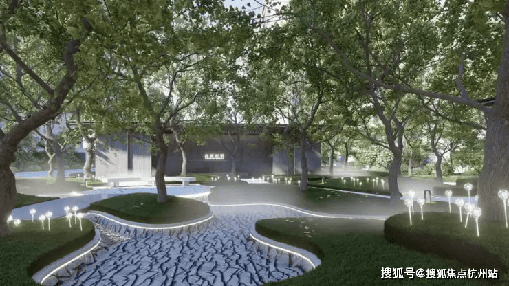 一环两轴九空间布局 :商业、自然、文化场景全时段切换,满足社交与独处需求,如300米星空夜跑道、mini高尔夫等青年设施。