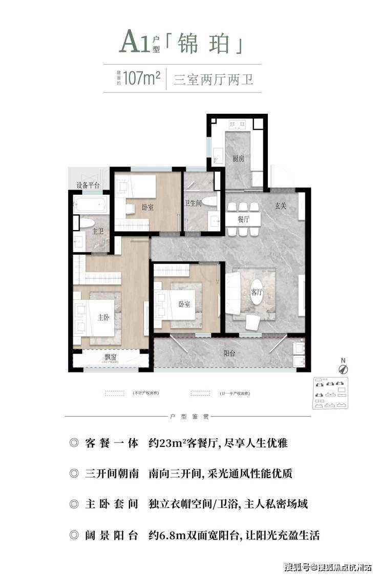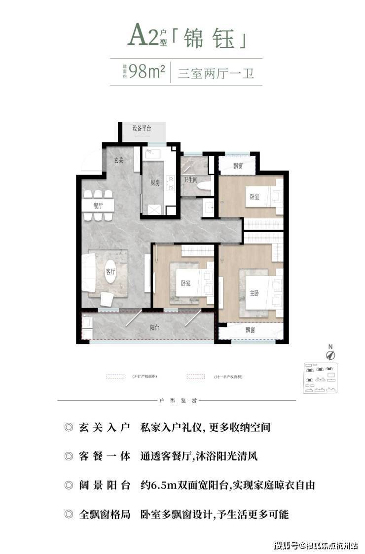 户型设计亮点 :三开间朝南、双阳台布局,客餐厅一体且动静分区,预留改造空间;U型厨房、独立玄关、主卧套间等细节提升实用性。