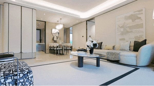 中西双厨分离,适配高端家庭的社交需求!约3.3米的超标层高,进一步提升了室内空间的开阔感,让居住体验更显奢华!