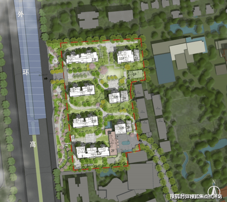 根据设计方案显示, 项目拟建设7栋11-13层小高层住宅,规划292户 ,用地面积17986.5 ㎡,容积率2.0,地上总建筑面积39600㎡,其中,商品住宅总建筑面积33921.01㎡。
