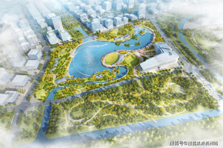 建筑风格造型,灵感源自东方的金镶玉设计,立面形似新石器时期的玉琮纹样,屋顶形似东方传统文化的飞鹤纹样,呈现灵动飘逸的东方之美。