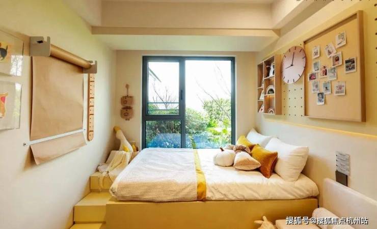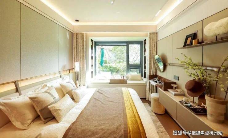 每一间卧房皆设飘窗,为每一颗热爱生活的心,预留一方浪漫天地。主卧参考酒店式套房,拥有衣帽间和独立卫浴间,尊重日常生活的私密感。与此同时,卫浴间的飘窗附设壁龛,可用于收纳,增加实用性。