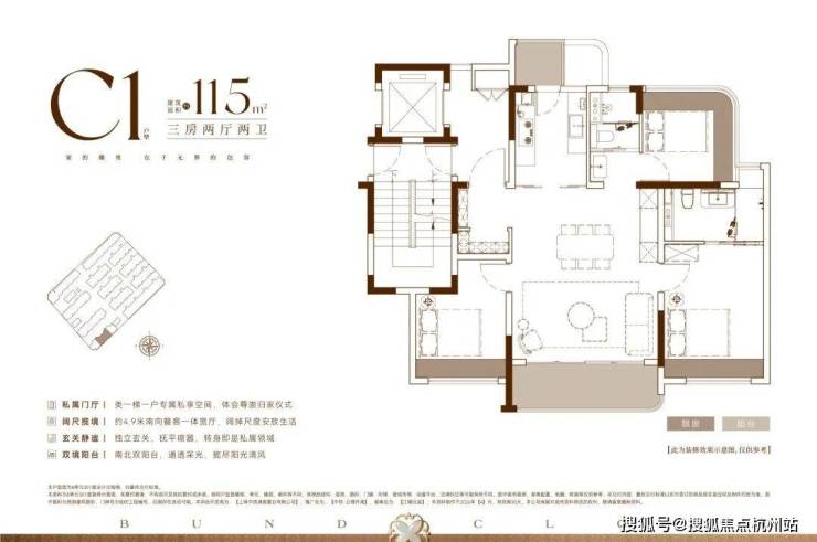 在115㎡户型的所有亮点之上,升级为约13米的三开间朝南面宽。这已经不是普通改善盘“够用”的逻辑,而是在尽可能把核心家庭活动区做出更强的尺度感和社交属性。