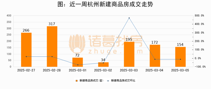 【杭州成交日报】03月05日新房成交154套、二手房308套;涨价房源62套