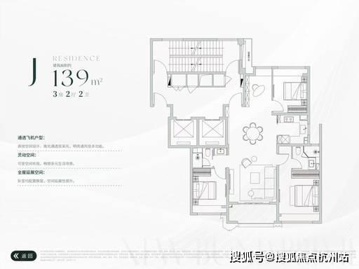 建面约 139㎡ 3 房 2 厅 2 卫(高层 J 户型)