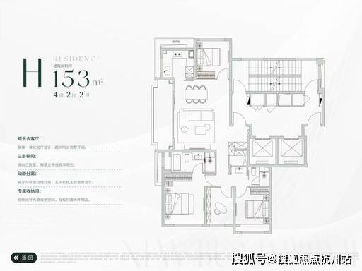 建面约 153㎡ 4 房 2 厅 2 卫(高层 H 户型)
