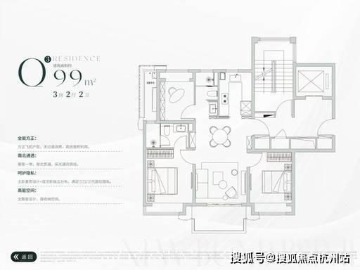 建面约 99㎡ 3 房 2 厅 2 卫(洋房 Q3 户型)