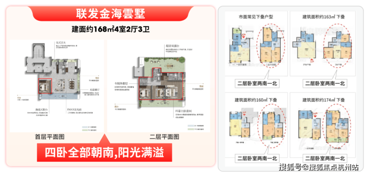 说实话,竞品的建面约120㎡也同样非常出众。但即使如此,金海雲墅建面约112㎡的产品依旧在附赠、客厅、主卧、独立电梯厅等维度碾压了他。