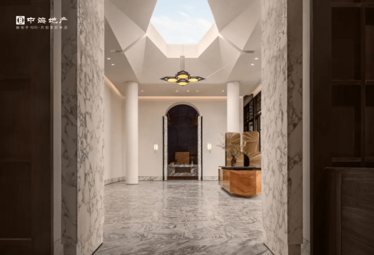 进入大堂,抬眼可见的是由一块完整的巨型玻璃组成的天窗,约7.9米高的钻石切面整玻吊顶+约500余块大花白奢石铺就的地面,让人每一次走进来都能感受到自然光线的包围,仪式感十足!