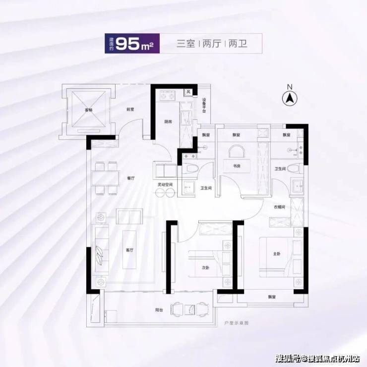 建面约95m²3房2厅2卫