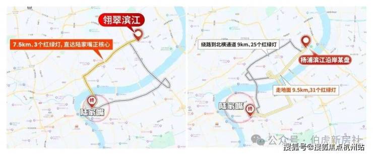 其他滨江一线的项目,想要去往浦东、浦西核心商圈,都要绕到翎翠滨江所在的片区,才能驶入快速路网。