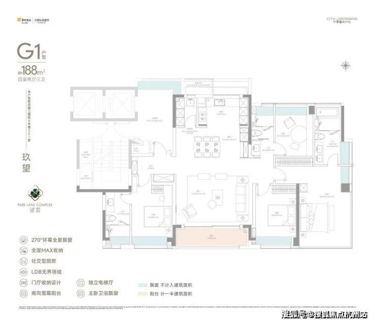 而在户型设计方面,建面约188㎡的4房产品,更是做了全面的超配。