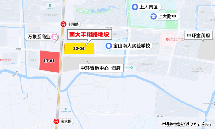 10月25日,2024年第六批次土拍,华润置地以底价约46.11亿拿下宝山区大场镇W12-1301单元32-04地块、11-01地块,即宝山南大丰翔路TOD地块二期 中环置地中心·望雲 。比当前润府的3幅宅地位置上更靠近地铁站!
