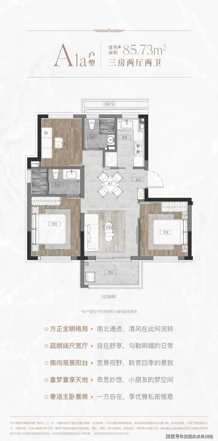 区别于市面上80多平2房或3房1卫,该户型做出了3房2卫的格局,功能性拉满,满足三代同堂/二胎家庭共居。