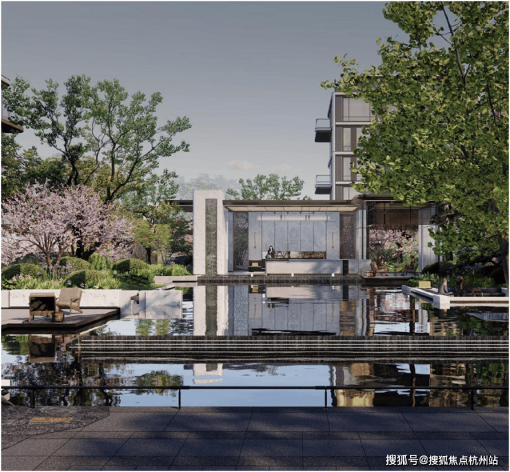 【怀山望】景观设计由绿城高端御用设计师宋淑华大师执笔,以仇英《桃花源图》为蓝本,匠心打造九曲流溪园林,借鉴苏州留园“三收三放”的造园精髓,铺陈开八重水境的盛景,让居者不出社区,就能沉浸式拥抱桃源的自然诗意。