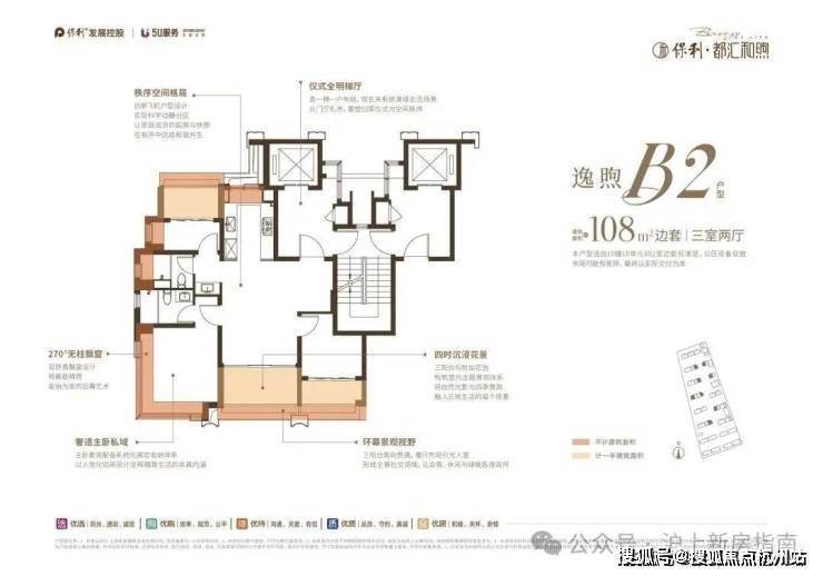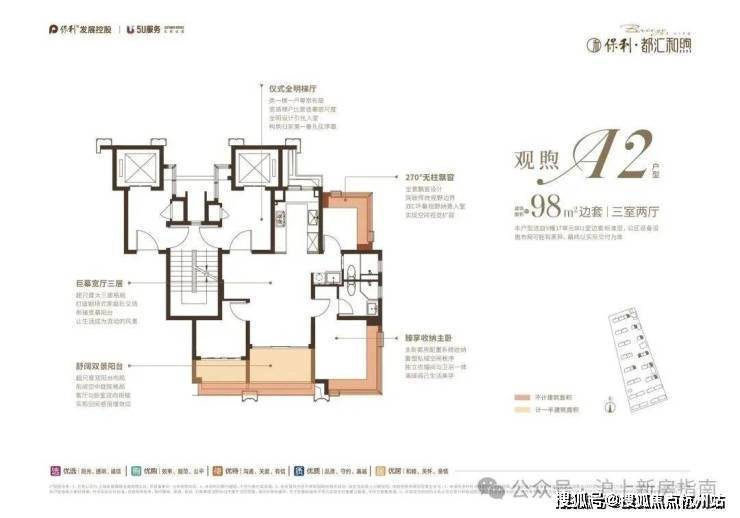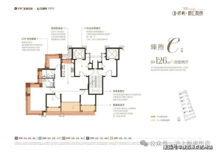 小高层类一梯一户、三阳台设计(部分户型) 、270°无柱飘窗(部分)