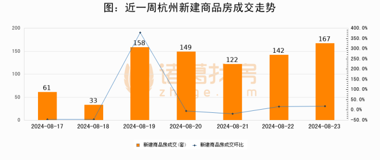 【杭州成交日报】08月23日新房成交167套、二手房159套;涨价房源37套