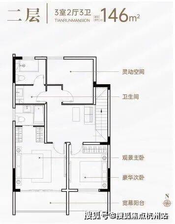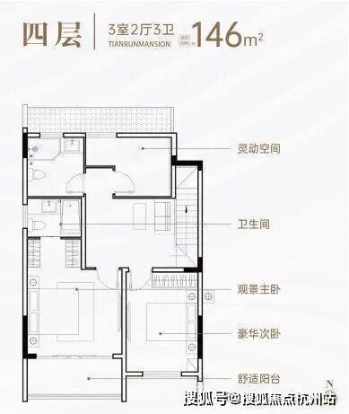 三、空间革命,146㎡叠墅演绎极致生活美学 【下叠·庭院时光】 146㎡阔境空间,7米面宽南向双开间(3.9m+3m),三房两厅三卫设计,两房朝南沐浴充足阳光。约16.2㎡私家庭院,可植竹养荷,亦可品茗会友,让自然与建筑共生共荣。 【上叠·星空之境】 同面积段上叠产品,以双层空间重构垂直生活美学。7米面宽配合全景落地窗,将周庄的晨昏四季尽收眼底。三卫设计实现主客分离,私密性与仪式感兼得,满足精英阶层对品质生活的苛求。