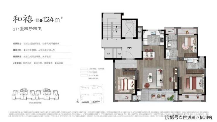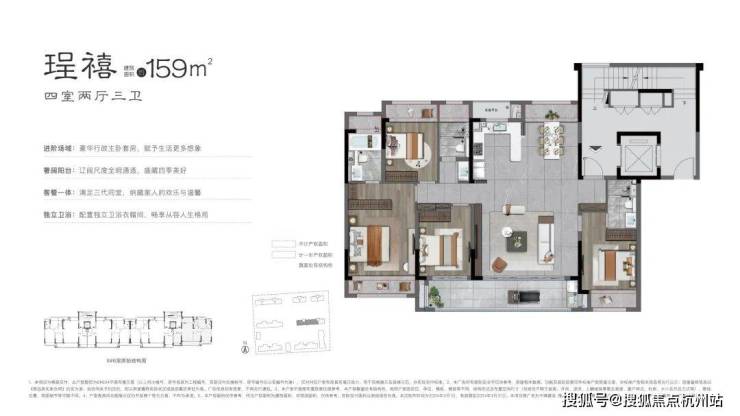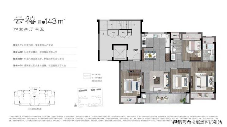 主力户型:124㎡(小高层)、143-159㎡(洋房),得房率82%。1