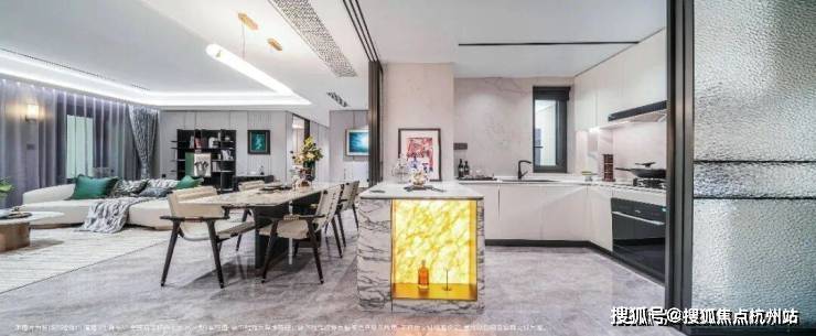 5. 整体采用了海派的装修风格,例如更耗时更费钱的带弧度的半圆形吊顶!以及当大部分项目还在用长虹玻璃时, 招商臻境 在厨房的三轨道移门处使用了水波纹玻璃,更具奢华感!这样的细节上次还是在看 3000万级别 的豪宅时才看到!