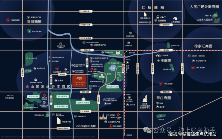 【旅游配套】 佘山森林公园、辰山植物园、月湖雕塑公园、广富林文化遗址、广富林郊野公园、天马山公园、欢乐谷、世茂精灵之城主题乐园