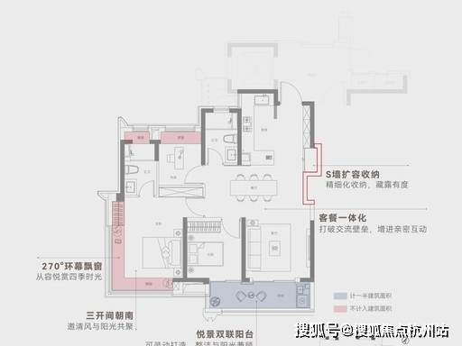 格局 : 四开间朝南、双联阳台、主卧 270° 环幕飘窗